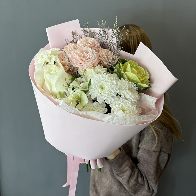 Букет хризантемы и Роза кустовая