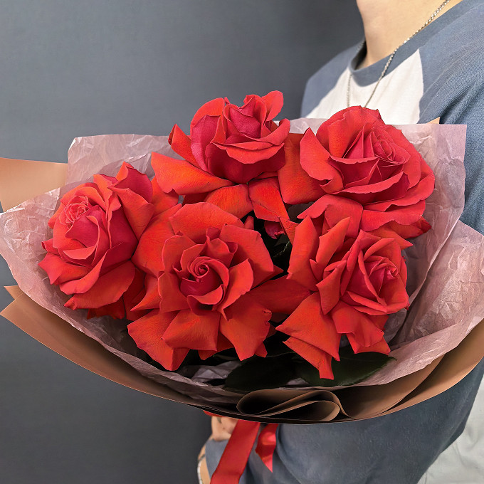 15 ярко-розовых роз Кения, 40 см в красной матовой плёнке