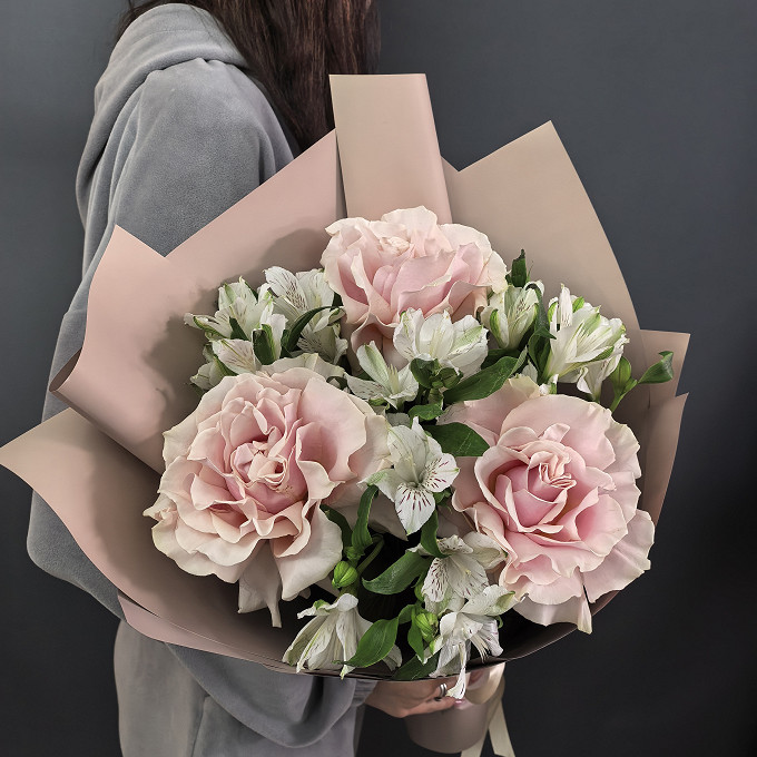 Французские розы с альстромерией