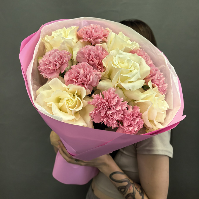 Розы, диантусы и пионовидные розы