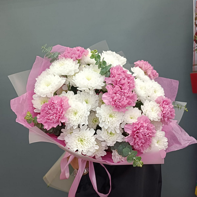 Пушистые хризантемы и диантусы
