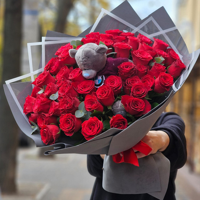 51 роза красная с мишкой