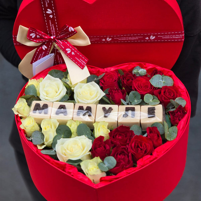 Коробочка цветов со сладостями